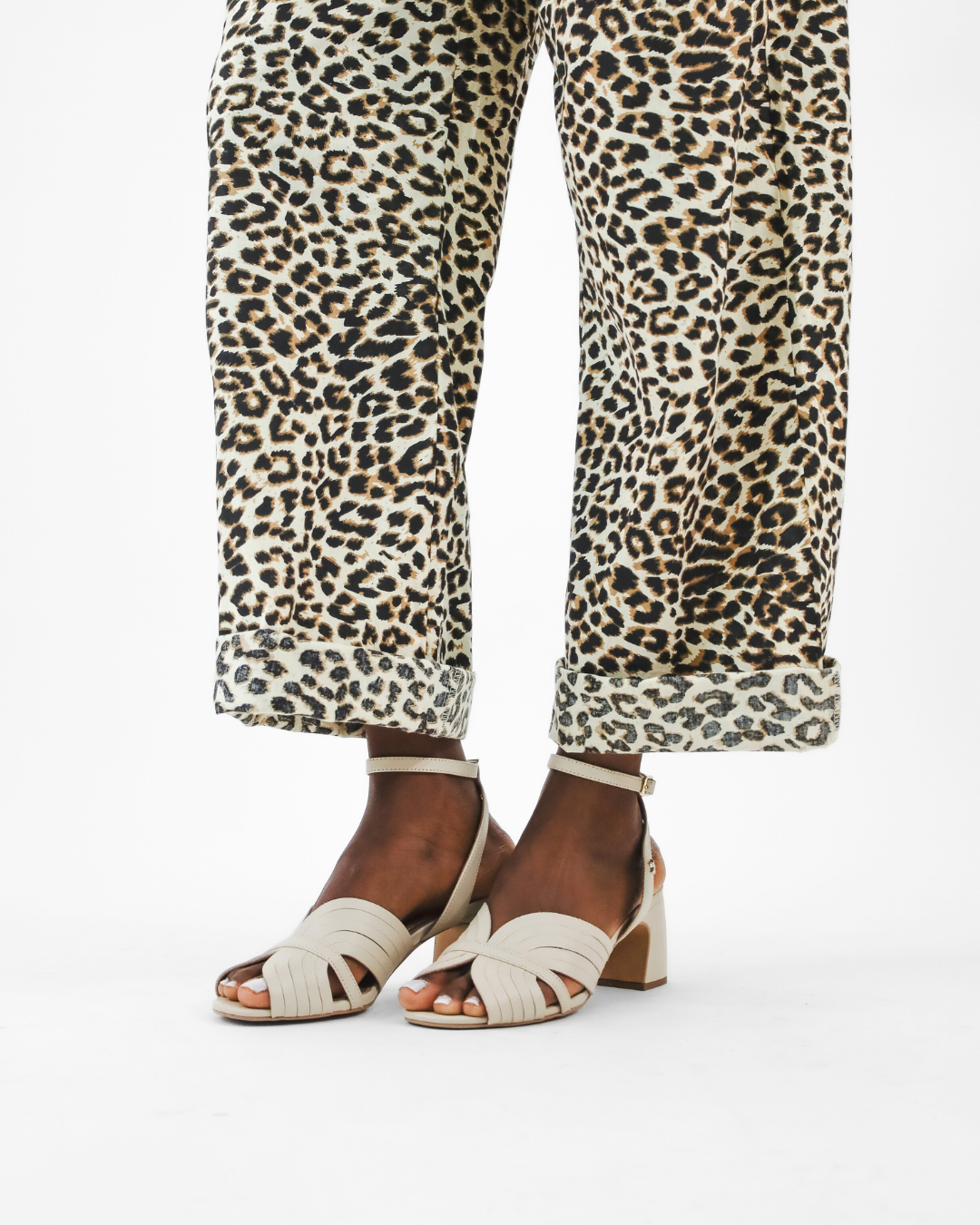Sandália em Pele Beige e Ráfia
