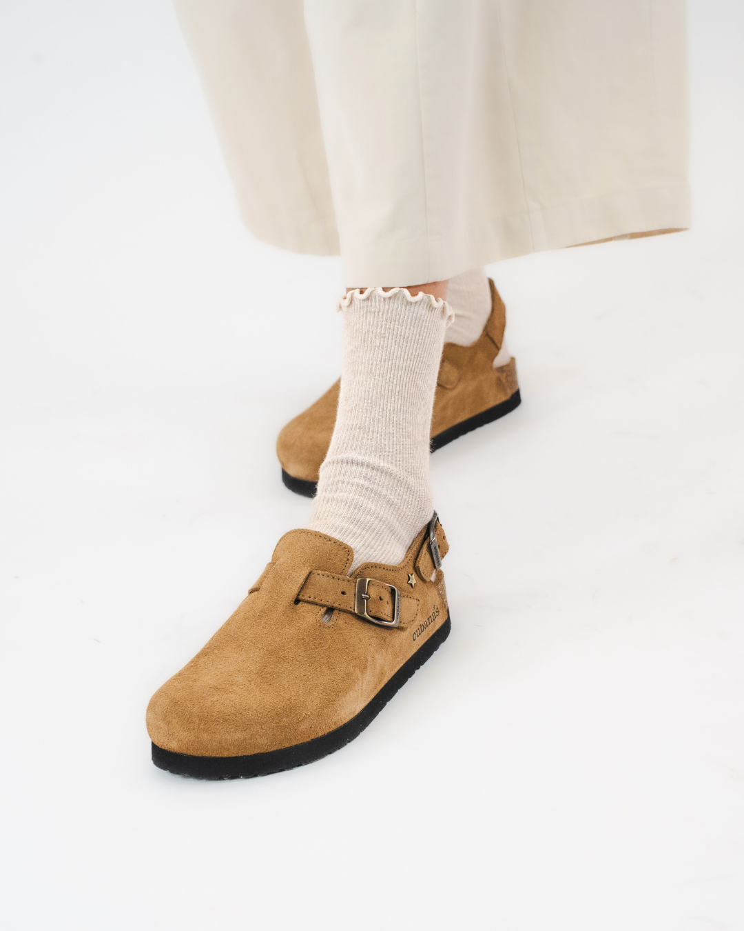 Sandália Rasa em Pele Castanha e Missangas