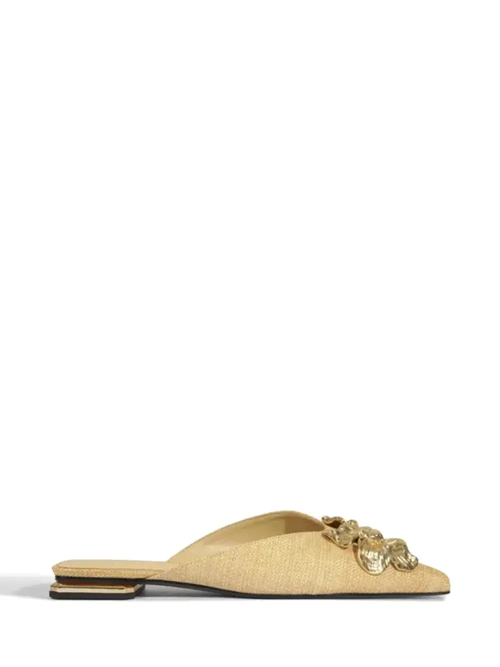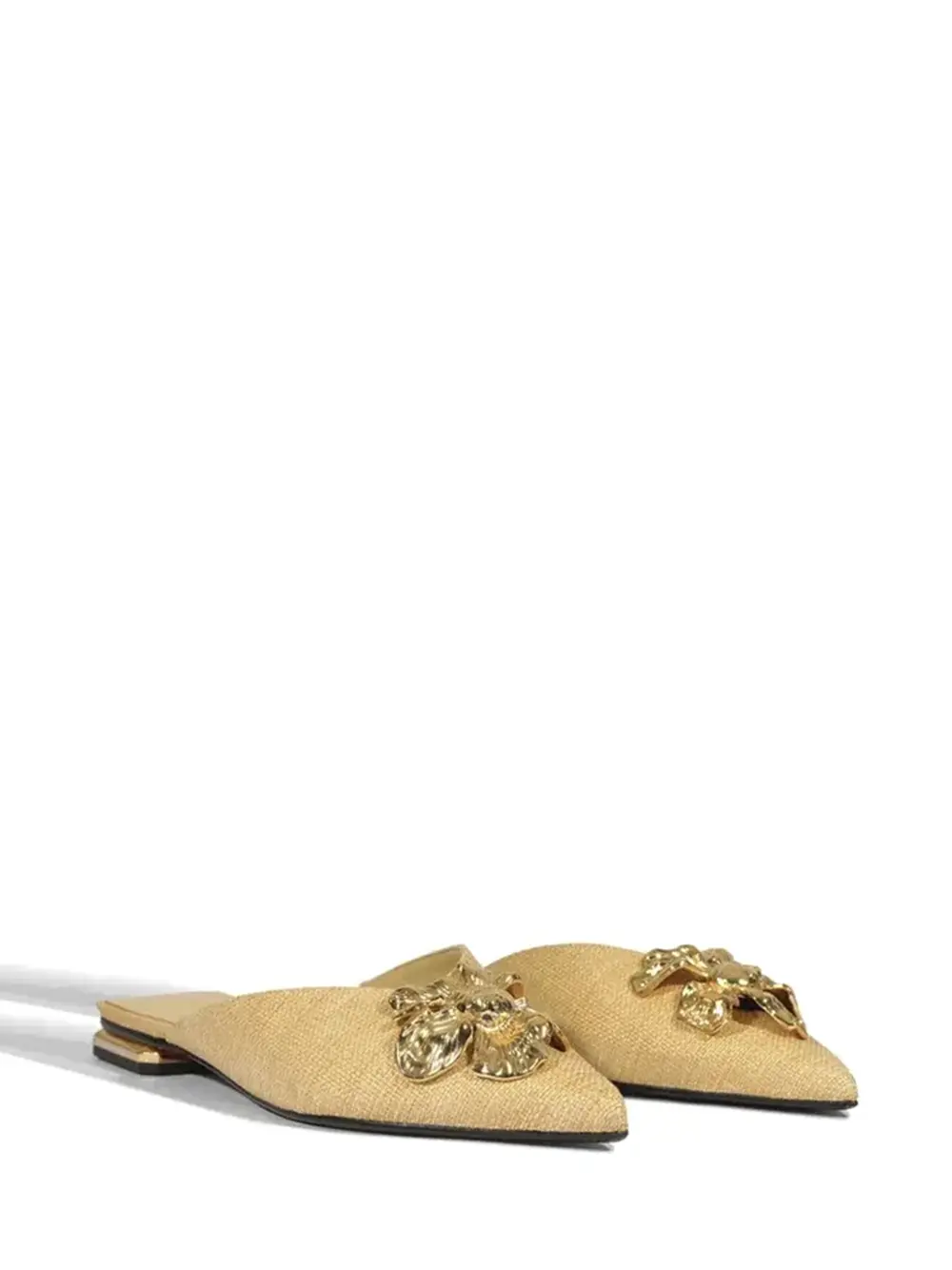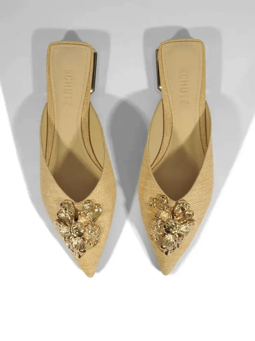 Mule Beige com Flor em Metal Dourado
