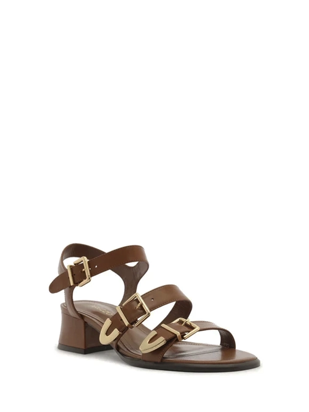 Sandália em Pele Castanha e Tiras