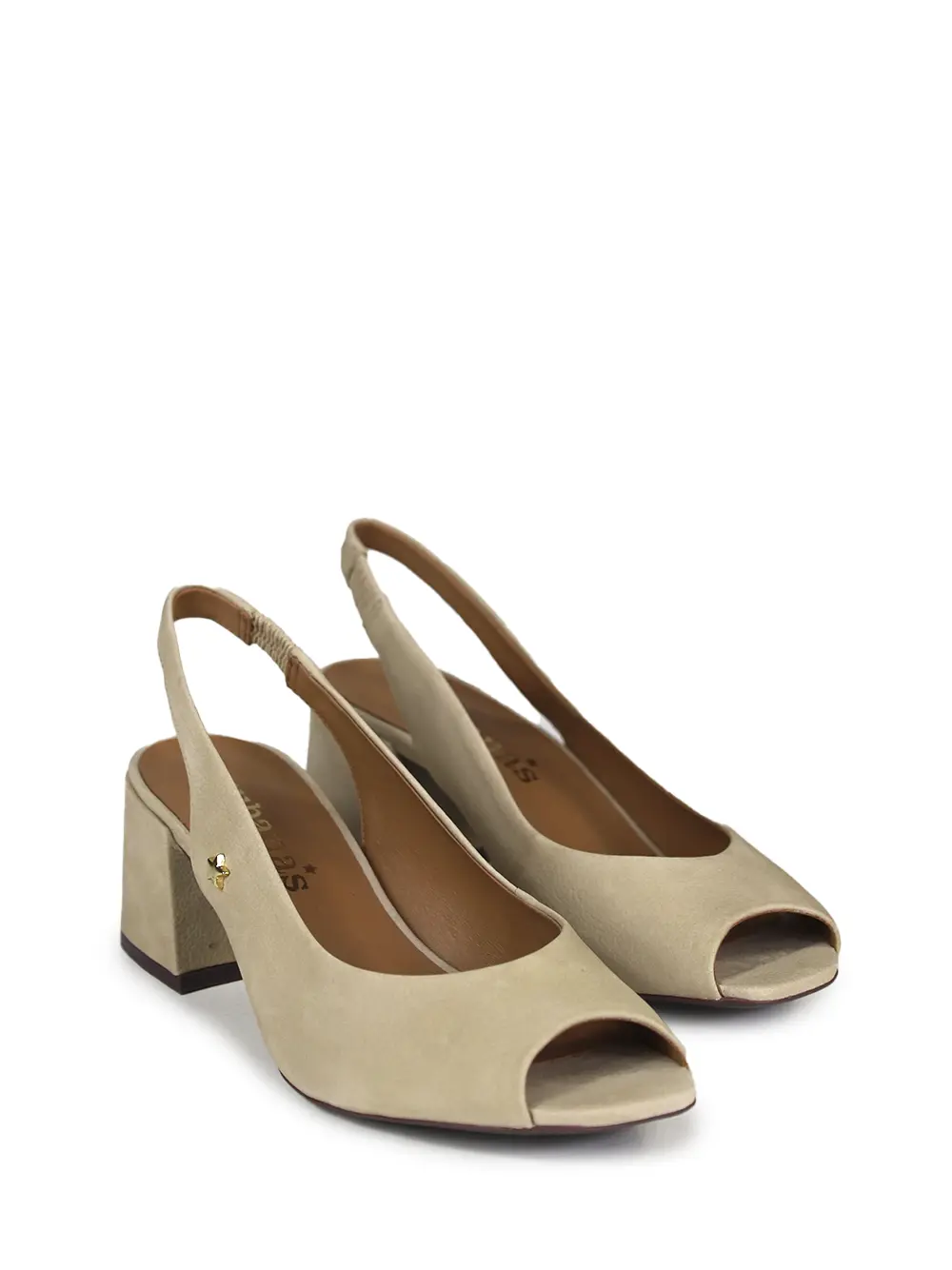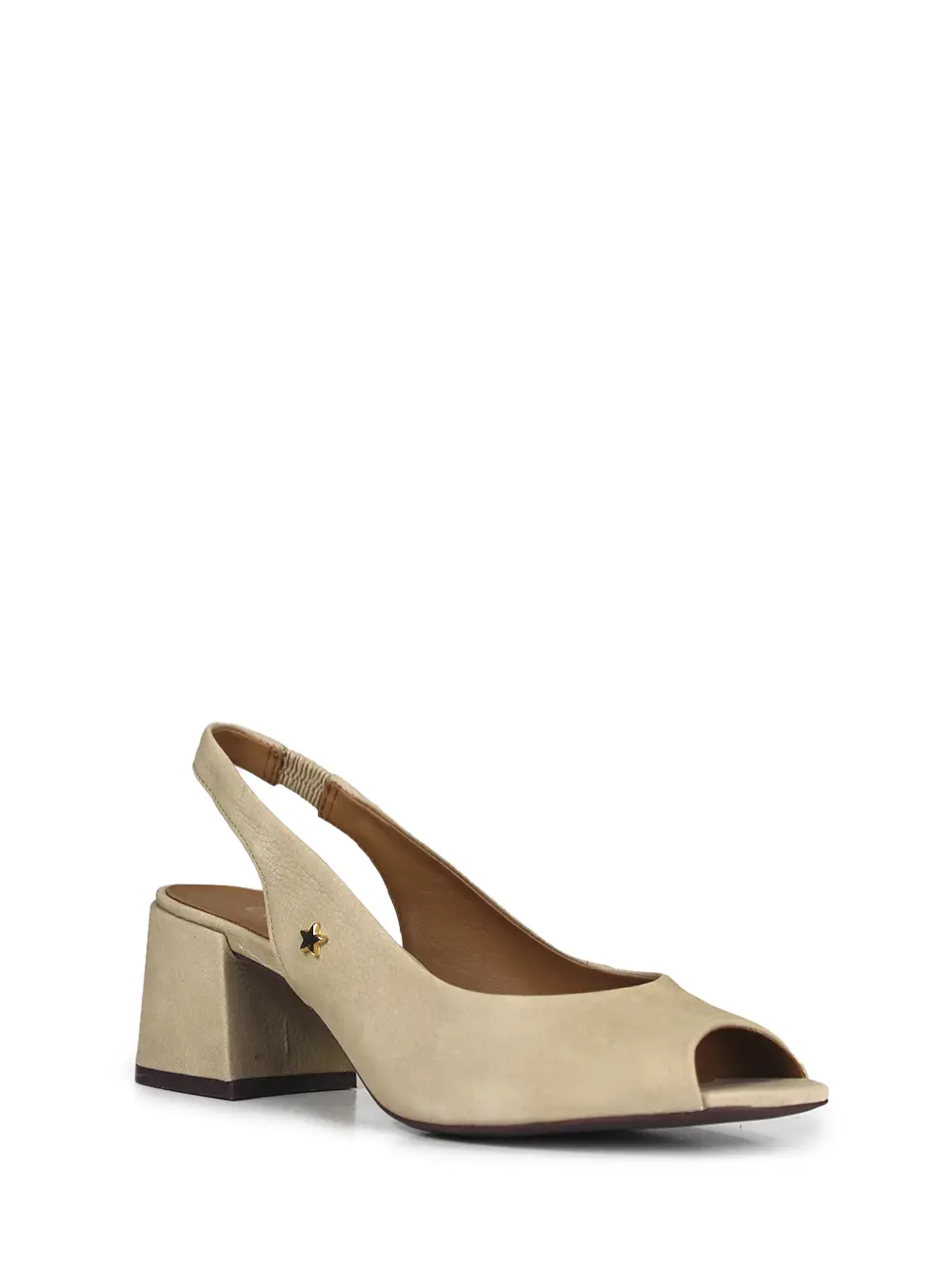 Beige Leather Peep Toe Sandals