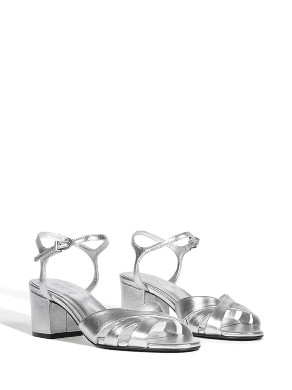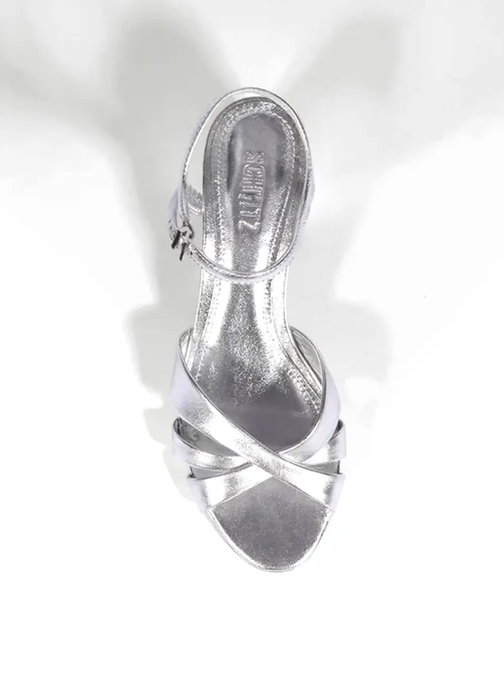 Silver leather sandals with straps. This item from Schutz combines elegance with classic lines that enhance this model.