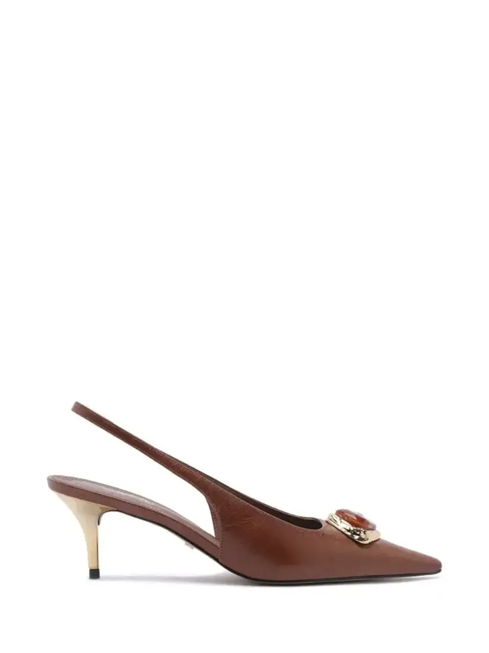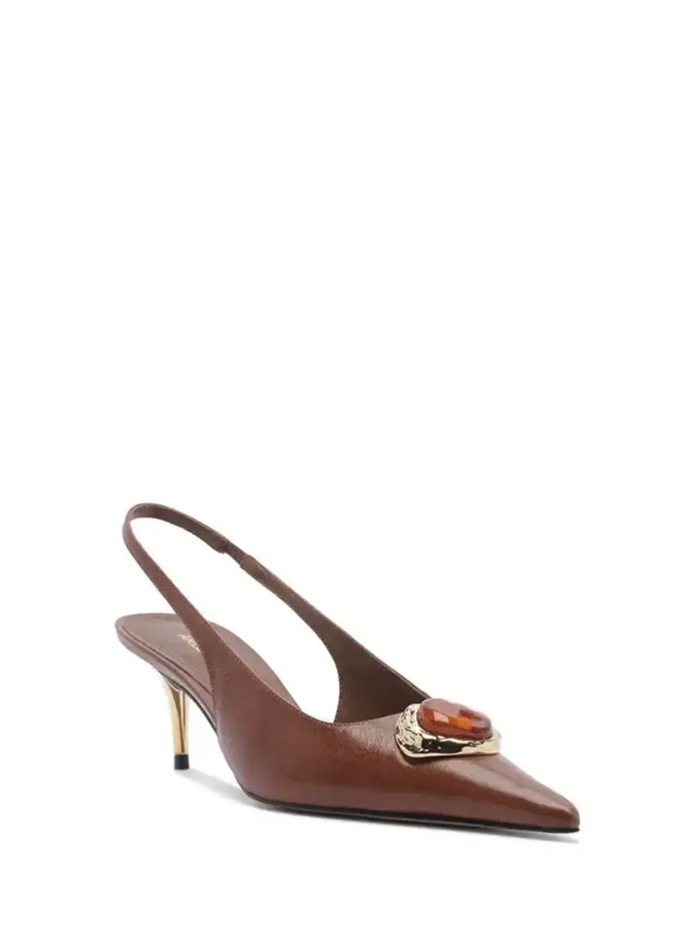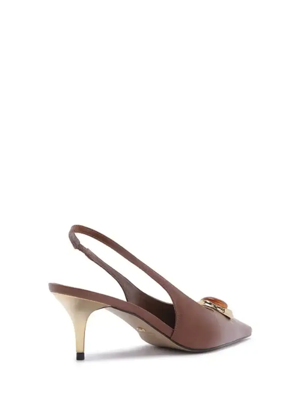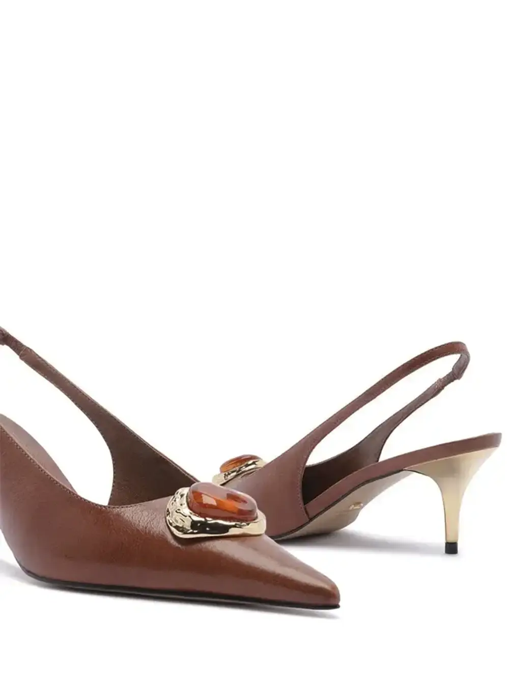 Brown Leather Pumps with Stone Toe Cap