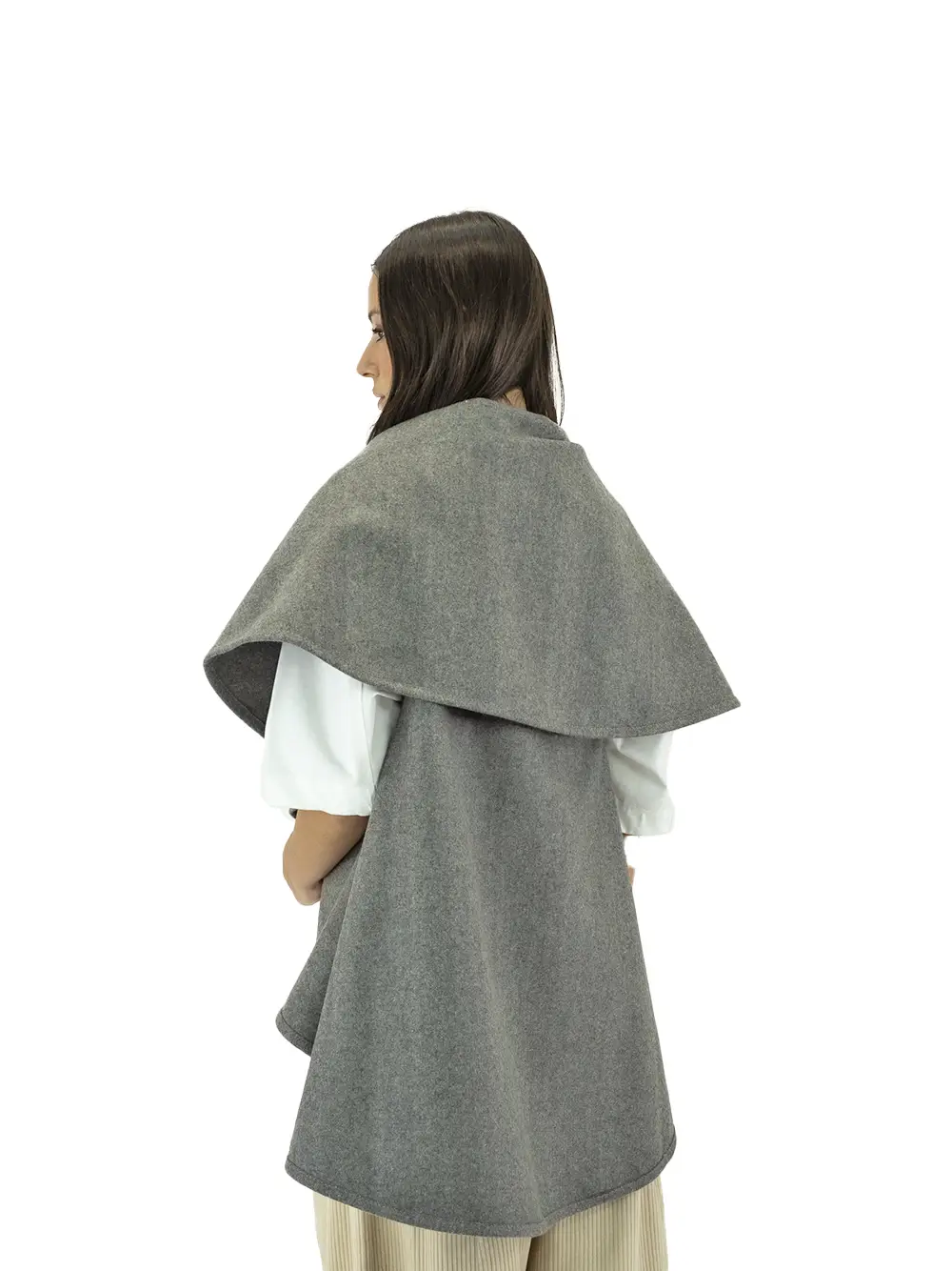 Inspirada nas capas dos pastores da Serra da Estrela, esta peça é integralmente produzida em Portugal com lã de ovelha 100% pura e técnicas tradicionais, combinando a resistência do burel com a elegância de uma adaptação moderna das tradições portuguesas.
