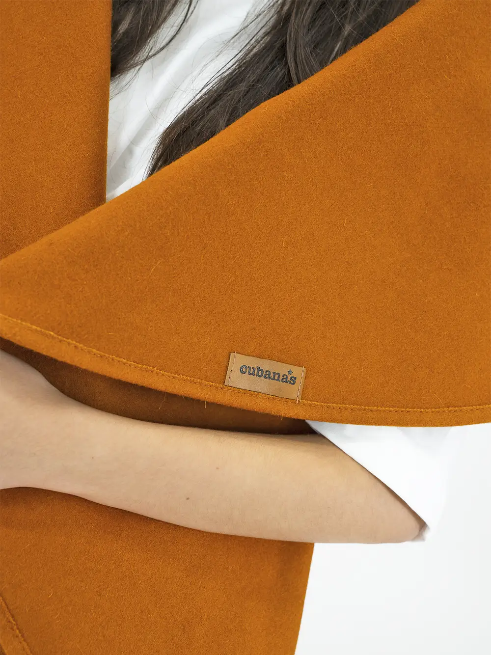 Inspirada nas capas dos pastores da Serra da Estrela, esta peça é integralmente produzida em Portugal com lã de ovelha 100% pura e técnicas tradicionais, combinando a resistência do burel com a elegância de uma adaptação moderna das tradições portuguesas.