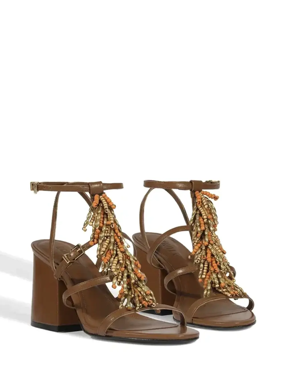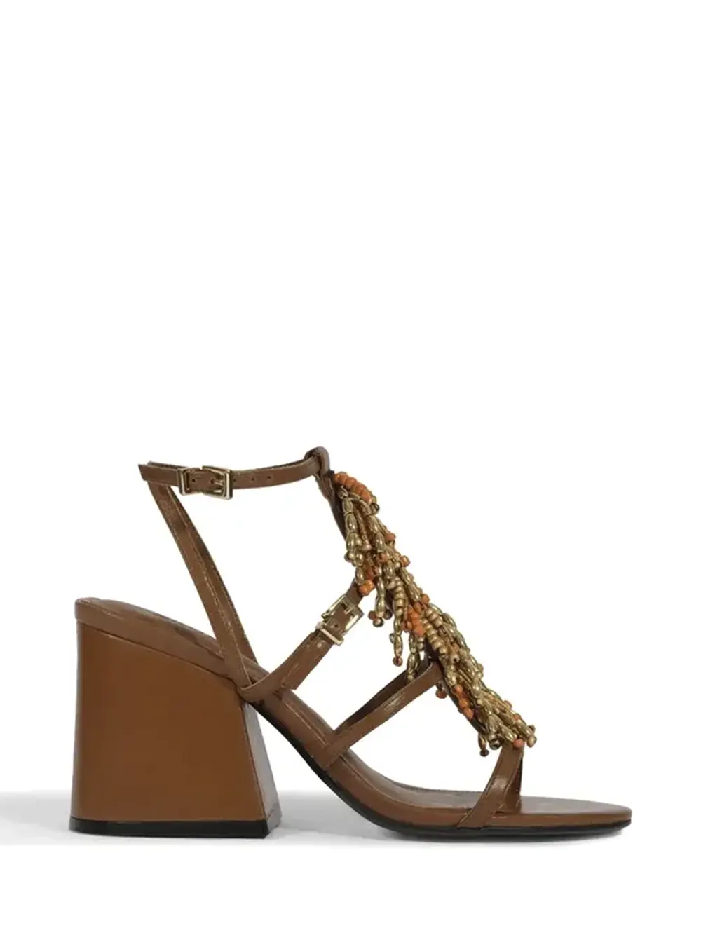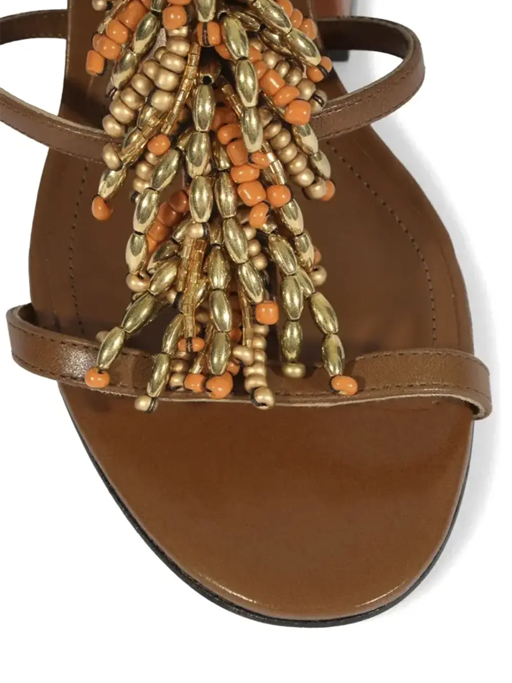 Sandália em Pele Castanha e Missangas
