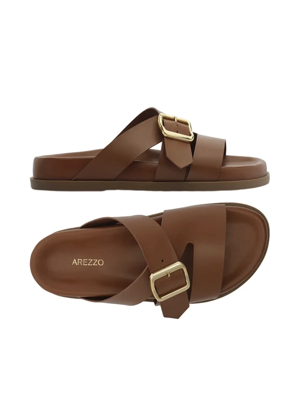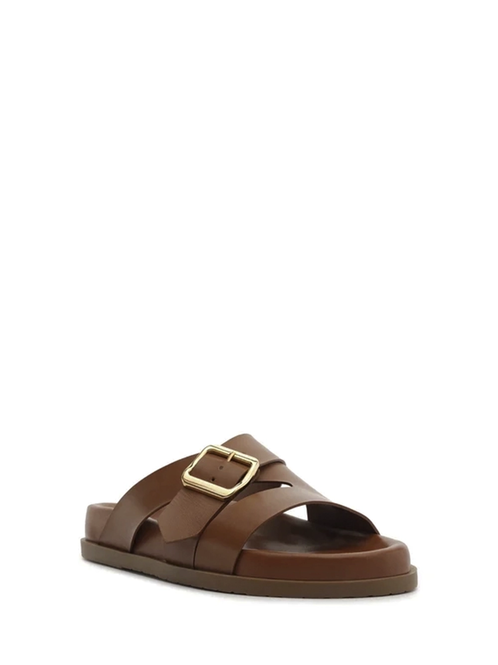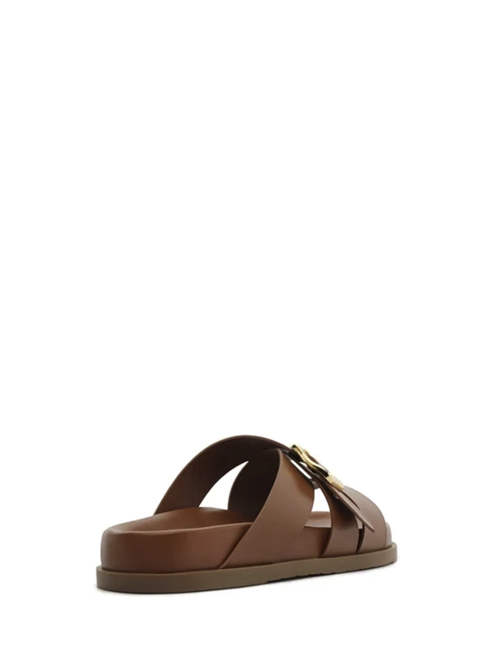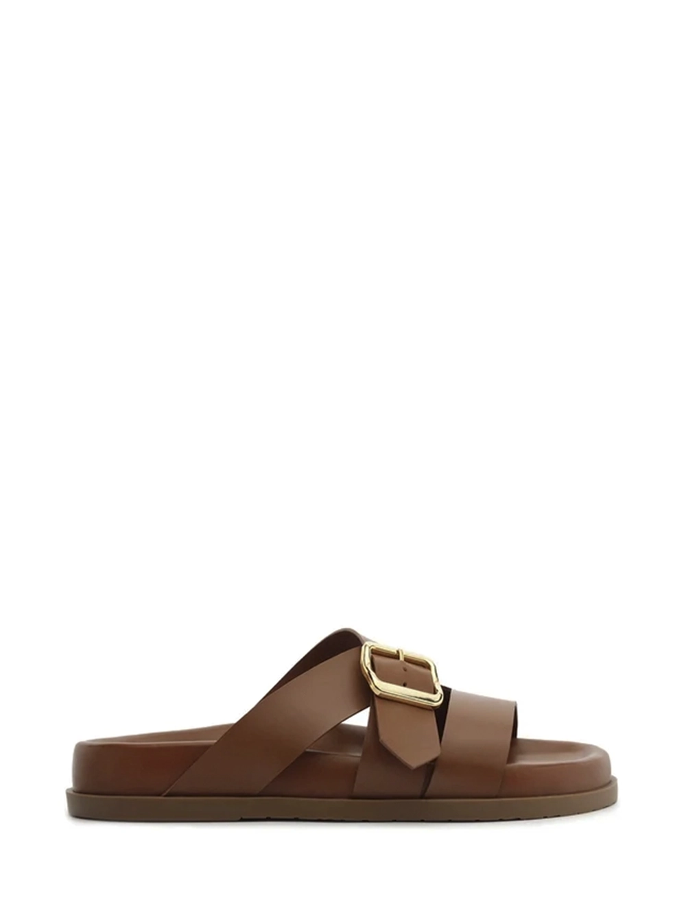 Sandália em Pele Castanha e Tiras Largas Fivela
