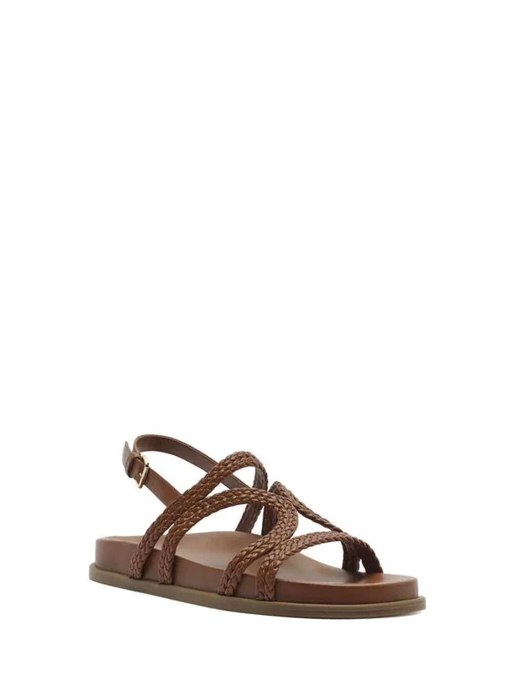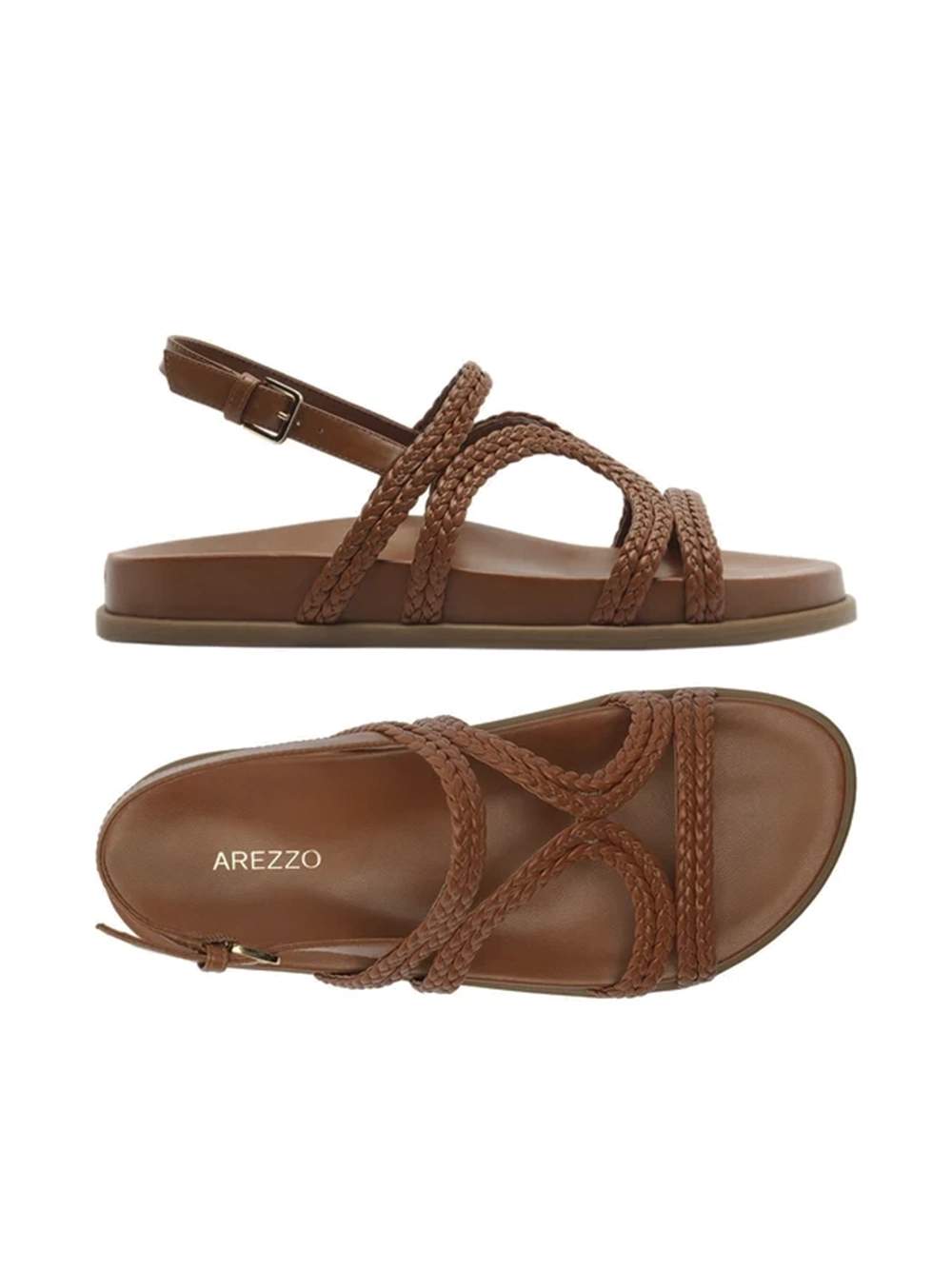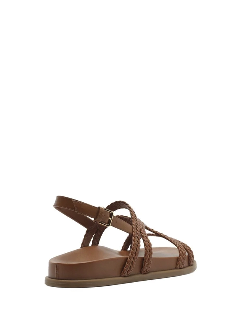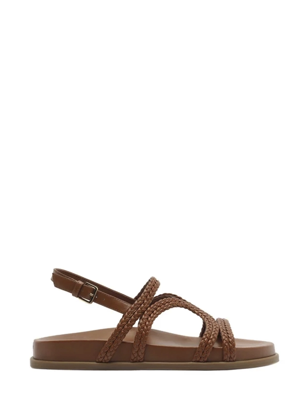Sandália em Pele Castanha e Tiras Trançadas