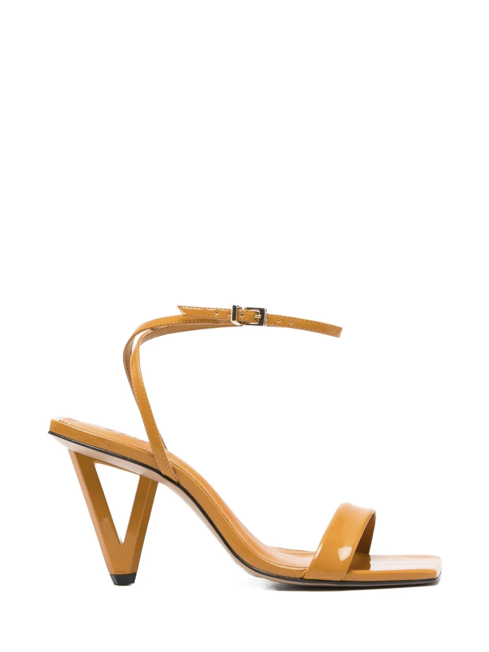 Sandália em Pele Laranja e Salto Triângulo