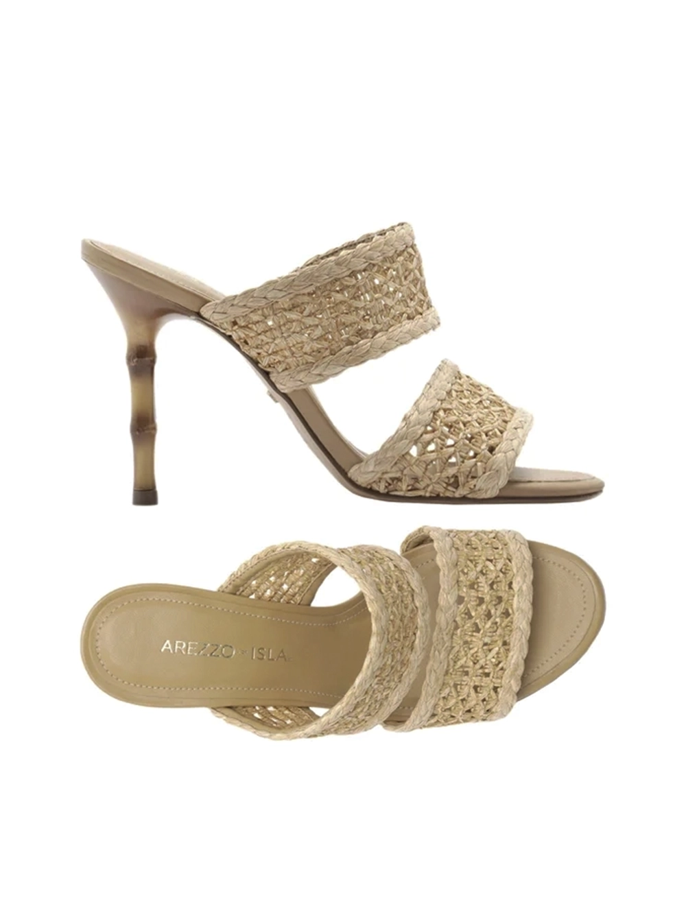 Sandália Palha Salto Alto Bambu Tiras Largas