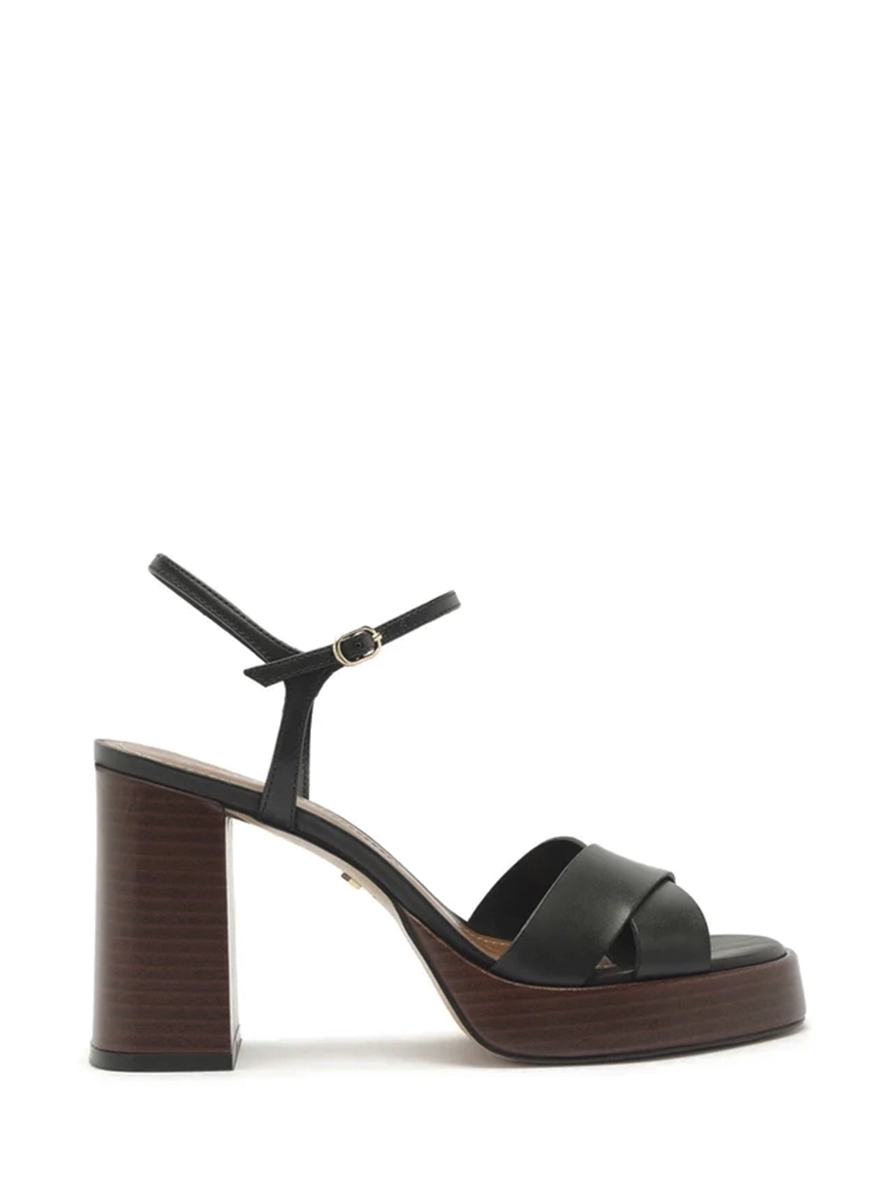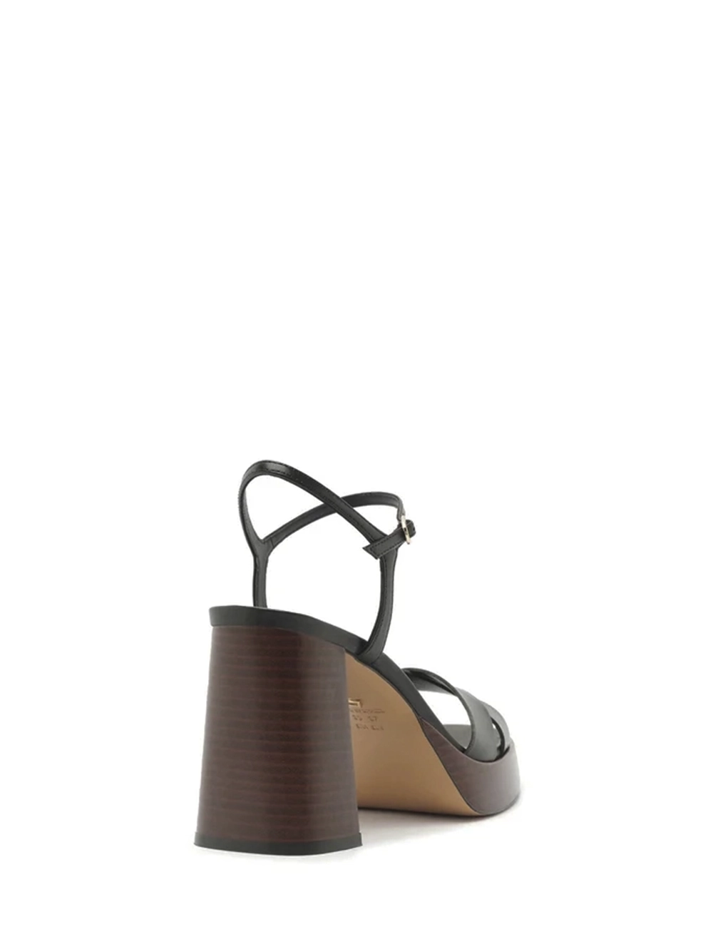 Sandália Preta em Pele e Salto em Madeira
