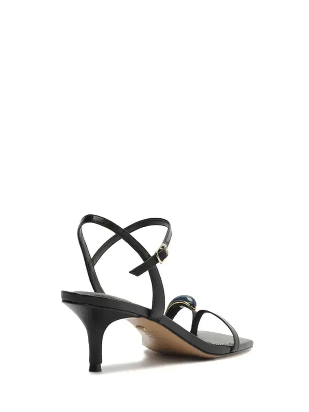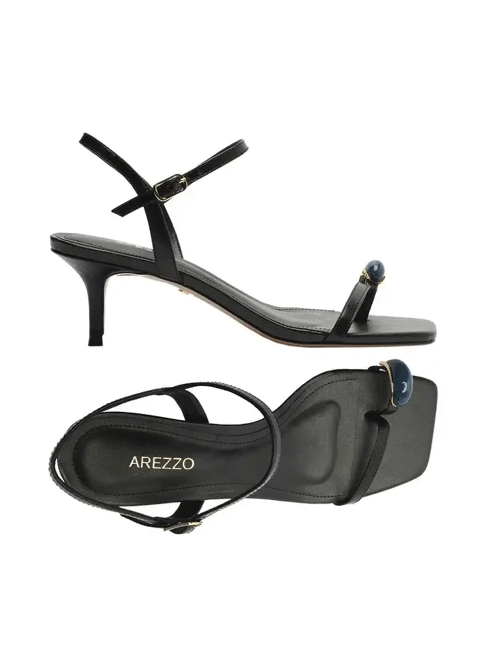 Sandália Arezzo Preta em Pele e Tiras com Metal
